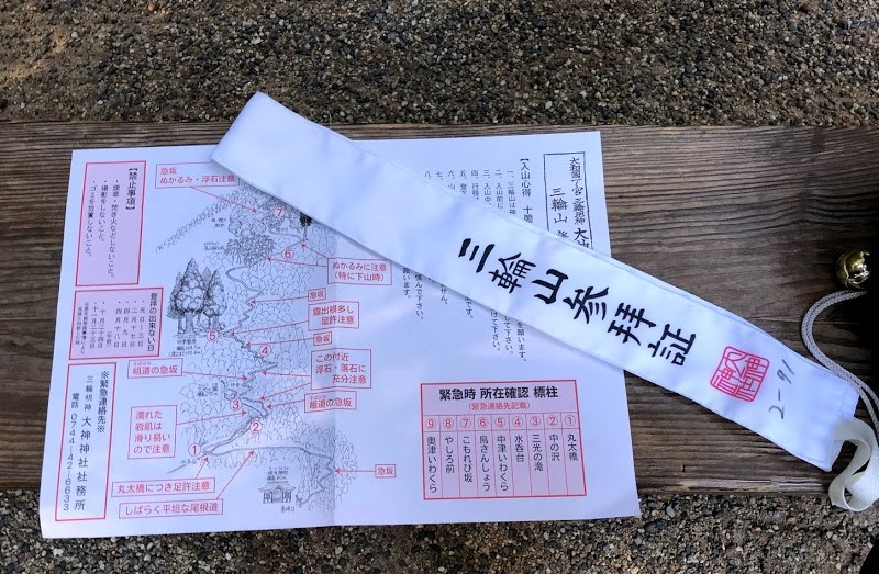 本来は白装束で登拝するのですが、この参拝証をかけることで簡易の白装束として認められます。