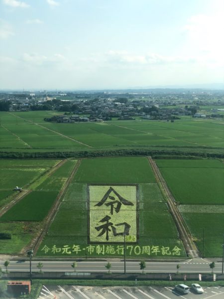 展望台からは水田をキャンバスにした「田んぼアート」が鑑賞できます。