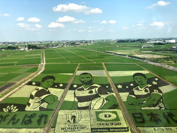 ラグビー日本代表の、姫野選手、リーチマイケル選手、田中選手が描かれていました。