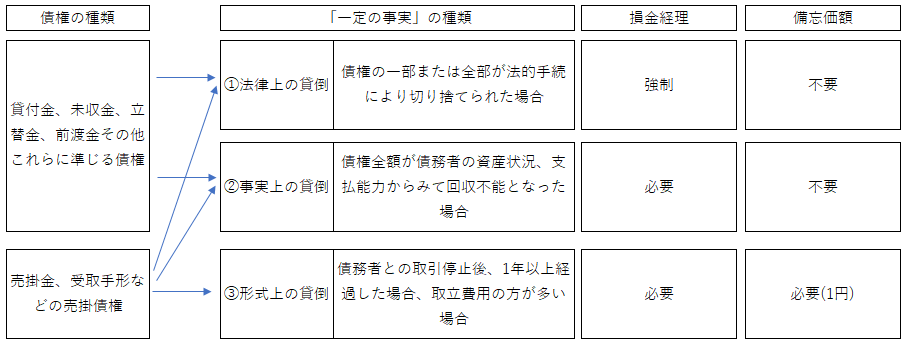 | ③形式上の貸倒 | 一定期間取引停止後、弁済が無い場合など |