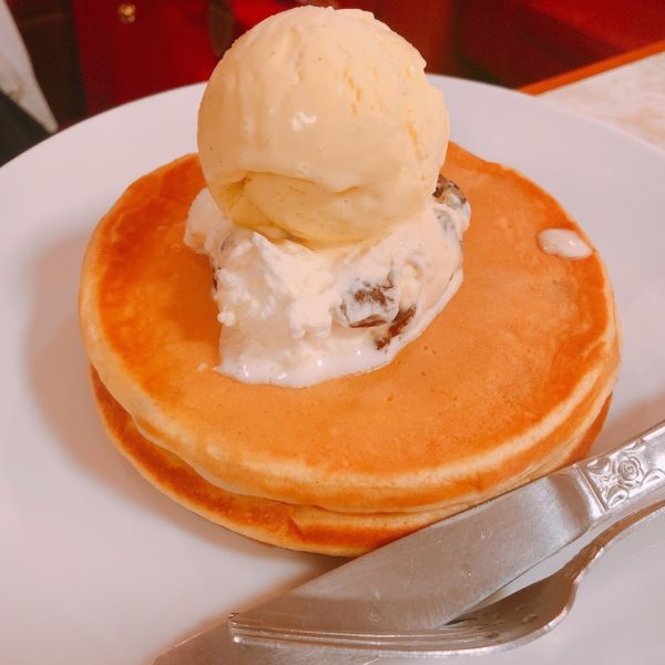 (ホットケーキの中にもレーズンが入っていて美味しいです。)