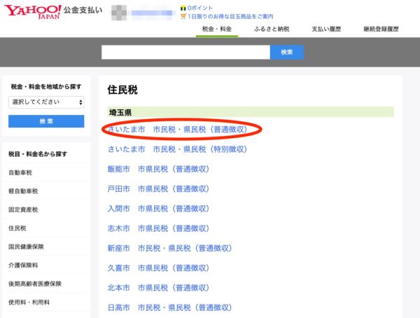 続いて、さいたま市 市民税・県民税(普通徴収)を選びます。