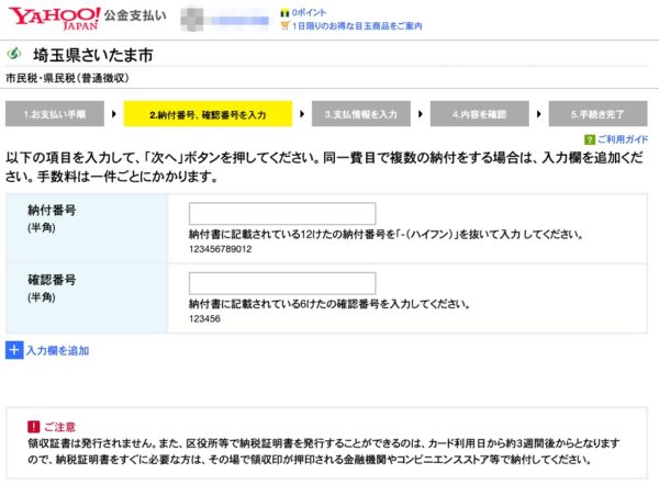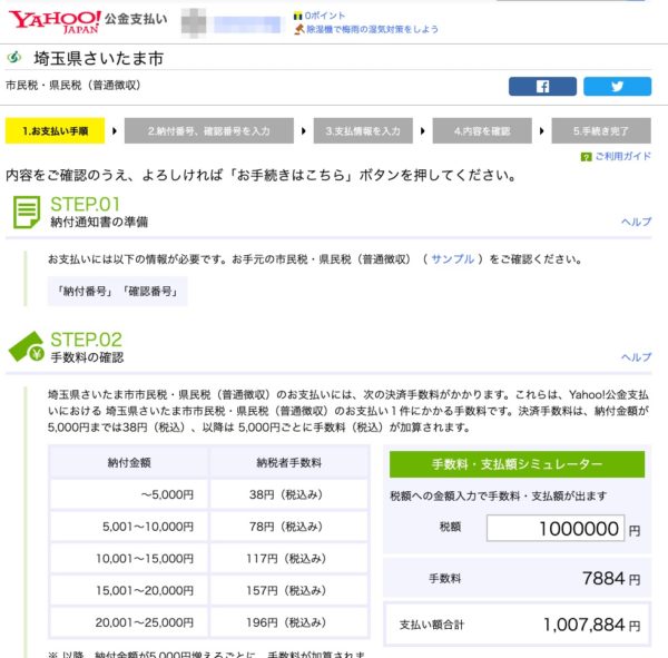 さいたま市の場合は、指定代理人納付者のYahoo!公共料金支払いで納付手続きがオンライン上でできます。