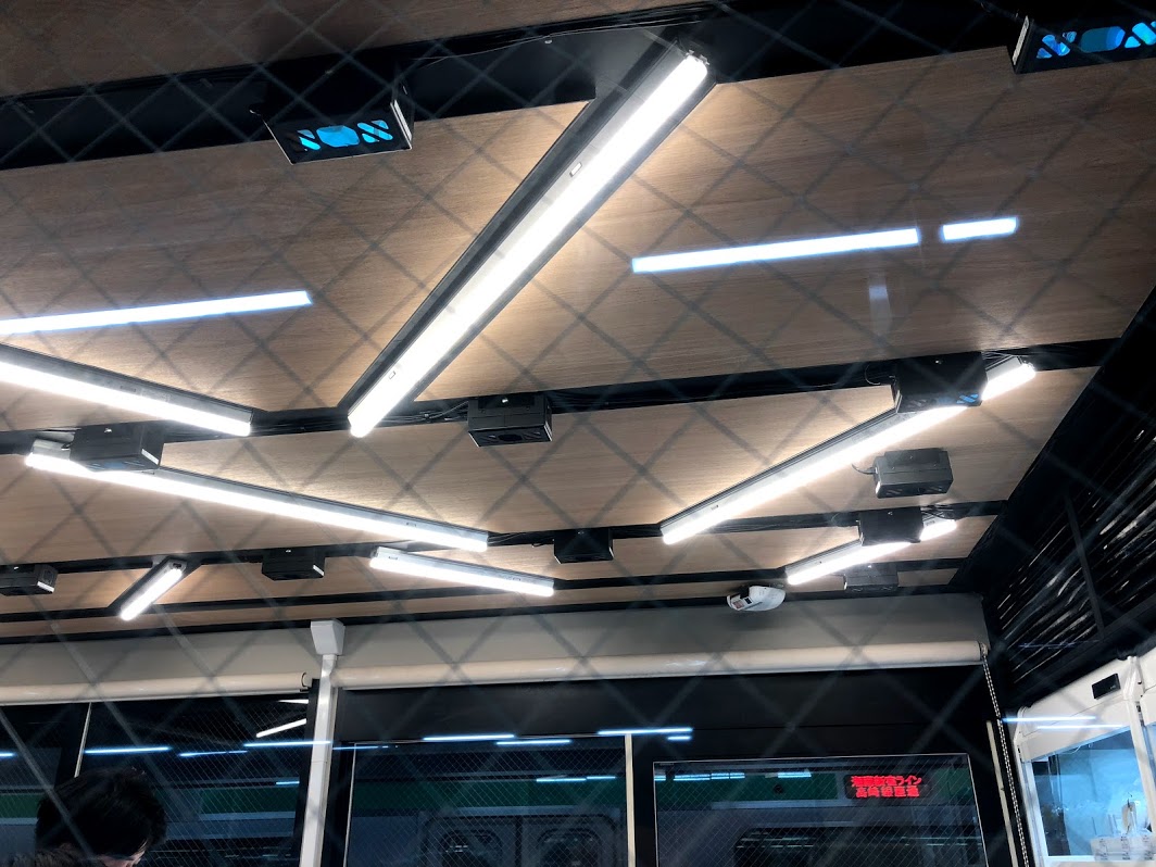天井には多くのカメラ、写真には10個以上写っています。