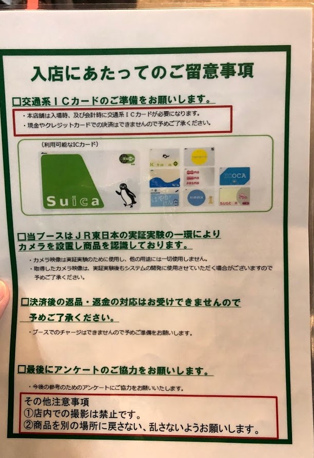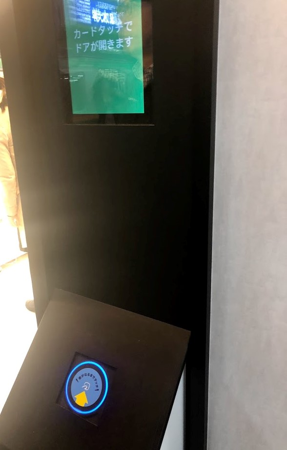 Suicaなどの買い物で使う交通系ICカードをかざしてお店に入ります。