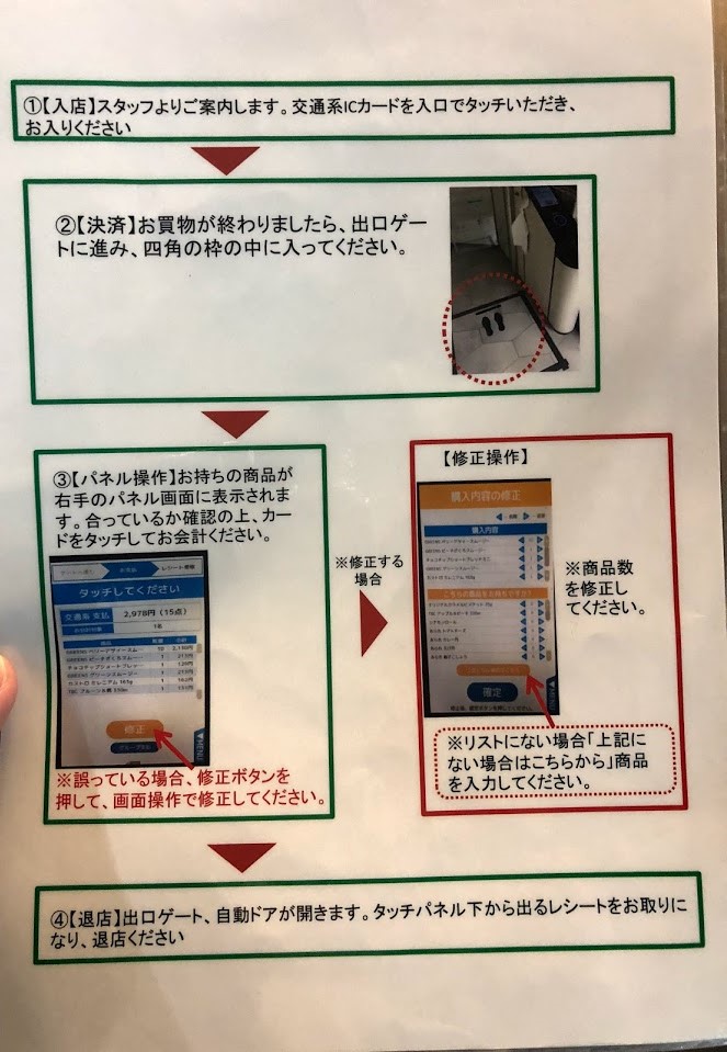 一番驚いたのは、商品棚から手に取ってそのままカバンなどに入れてしまっても、レジにいくと金額が表示され決済ができることです。
