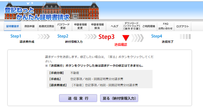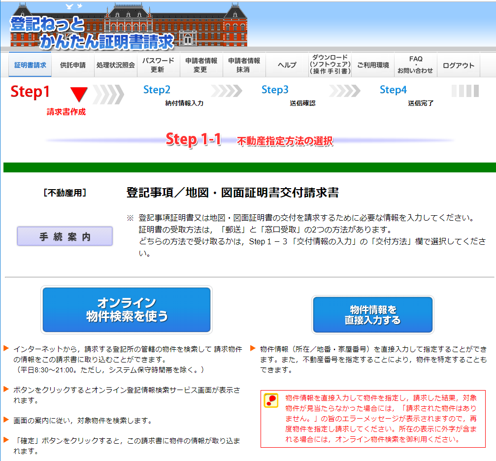登記手続きは、「かんたん証明書請求」と「申請総合ソフト」がありますが簡単な方で手続きしました。