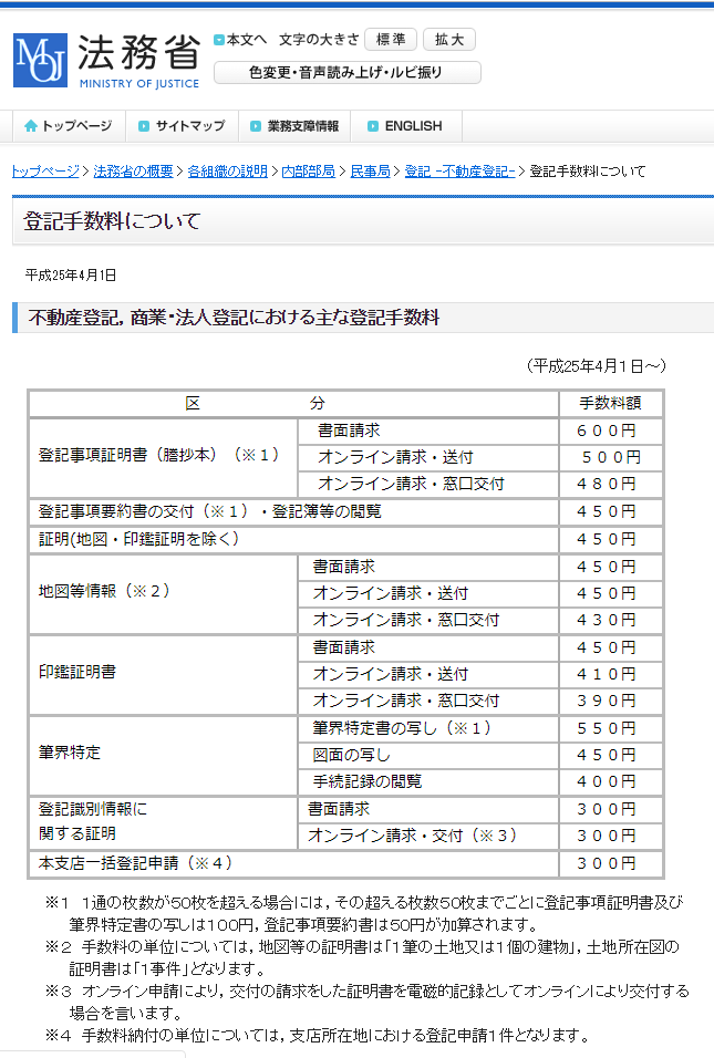 急いでいる時などは、オンラインで請求しておいて法務局の窓口で行け取ることも可能(480円)