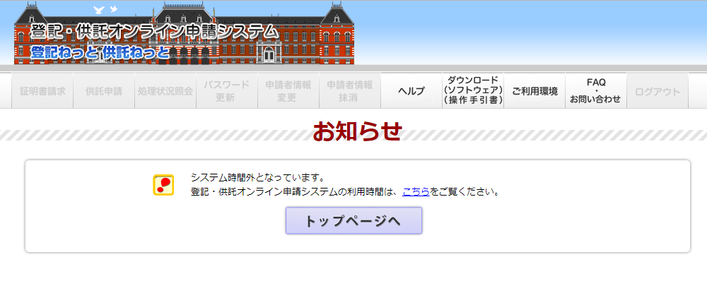 帰宅して(21時半)から申請手続きをしようとすると、システム時間外ですと表示がされました。