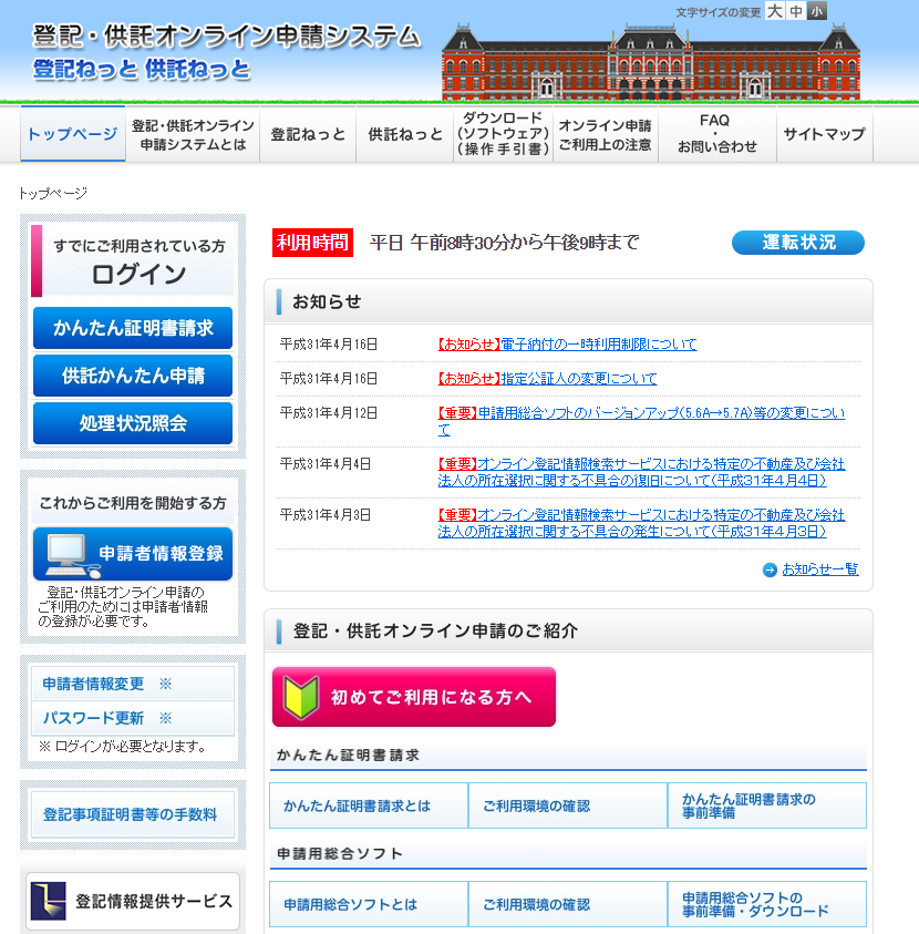 「登記・供託オンライン申請システム 登記ねっと供託ねっと」
