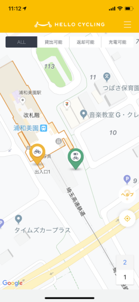 浦和美園駅に貸出可能な自転車があったのでスマホで予約してみました。