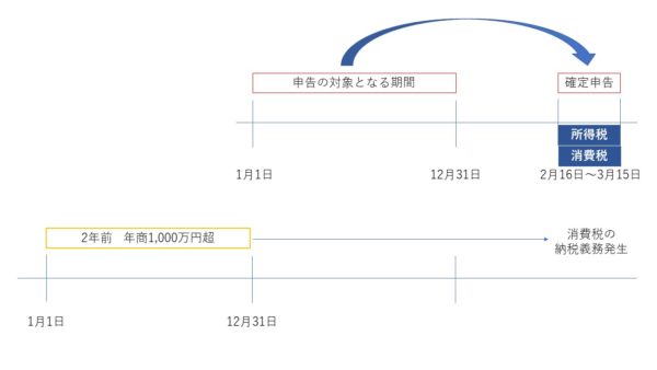 申告の対象となる期間が年商1,000万円を超えていない場合でも、消費税がかかることがあるからです。